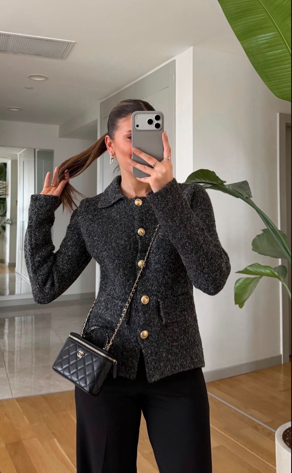 Black Wool Button-Up Cardigan