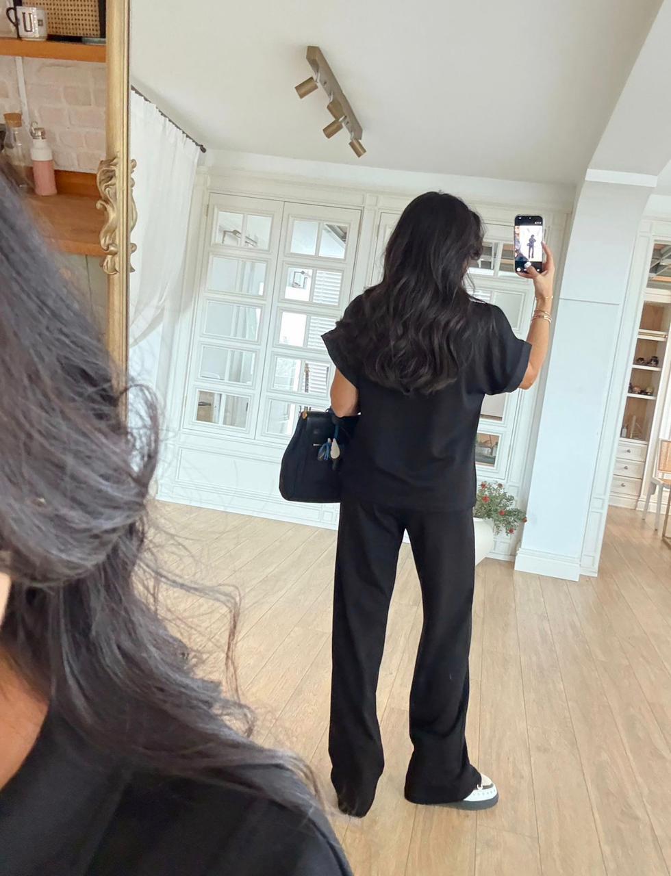 Black Zip Collar Short Sleeve Top and Pants Set
