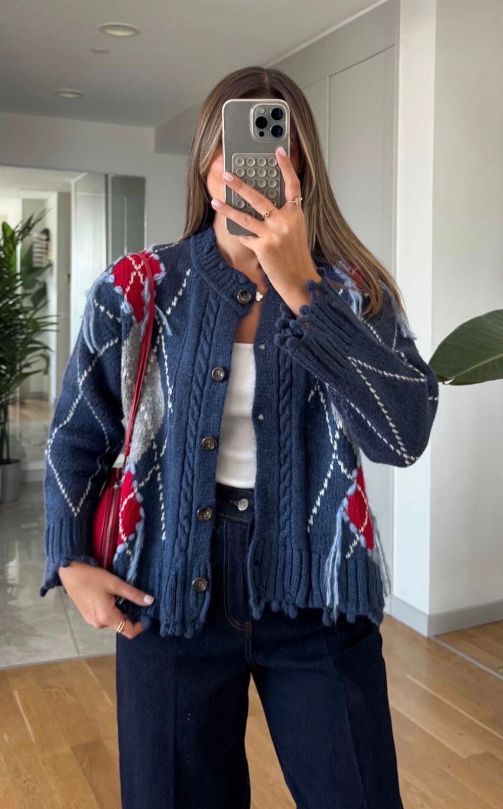 Soft oversized argyle cardigan in beige grey and white