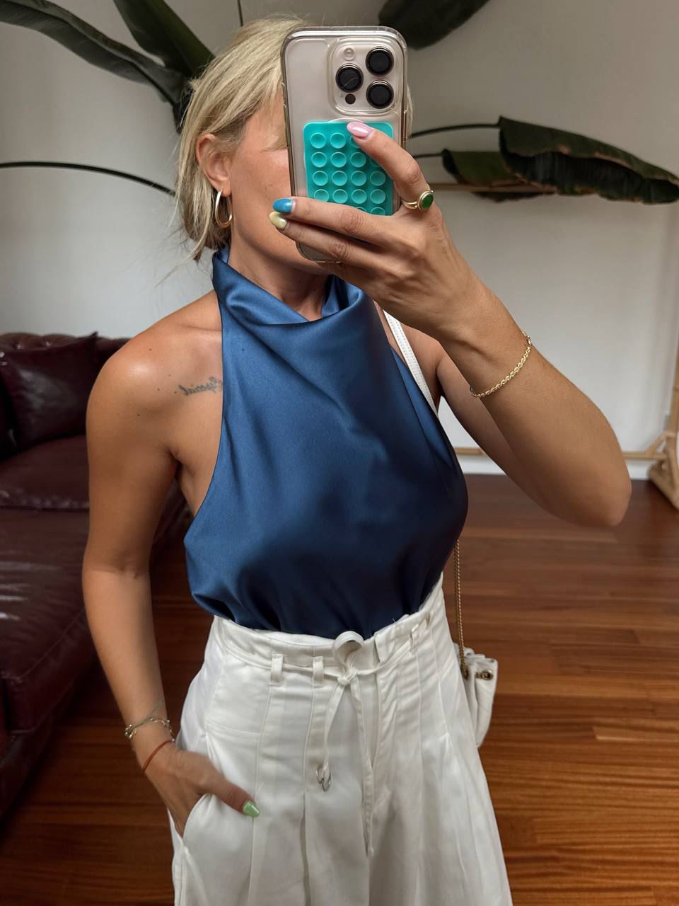 White Satin Halter Top