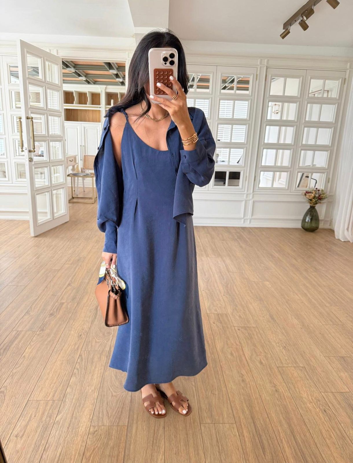Blue Sleeveless Maxi Dress With Shirt