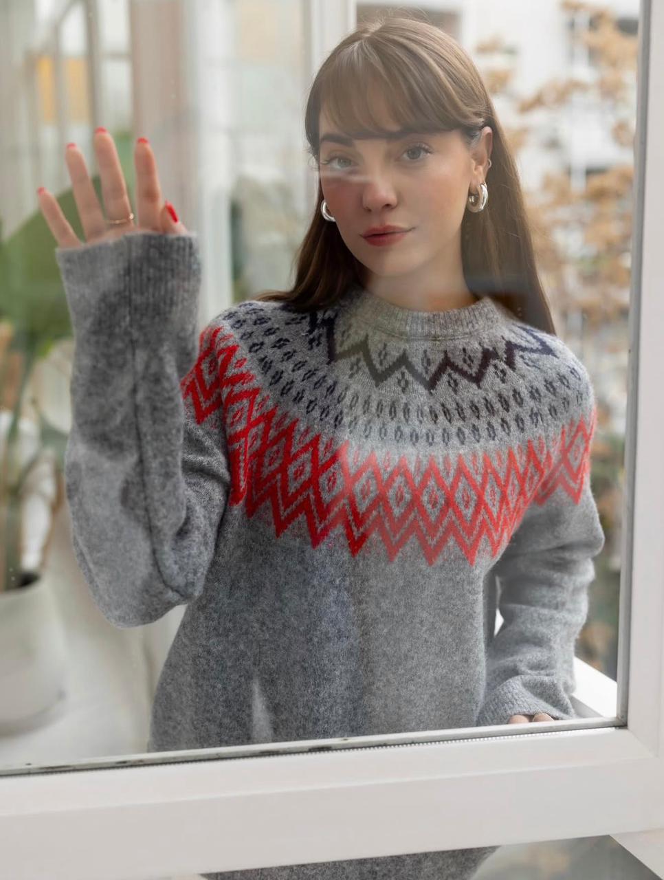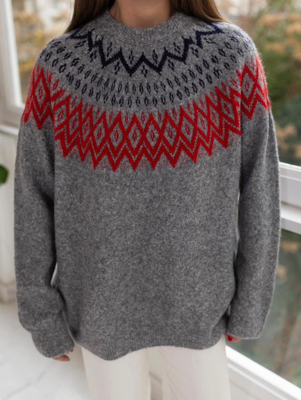 Gray Fair Isle Knit Sweater