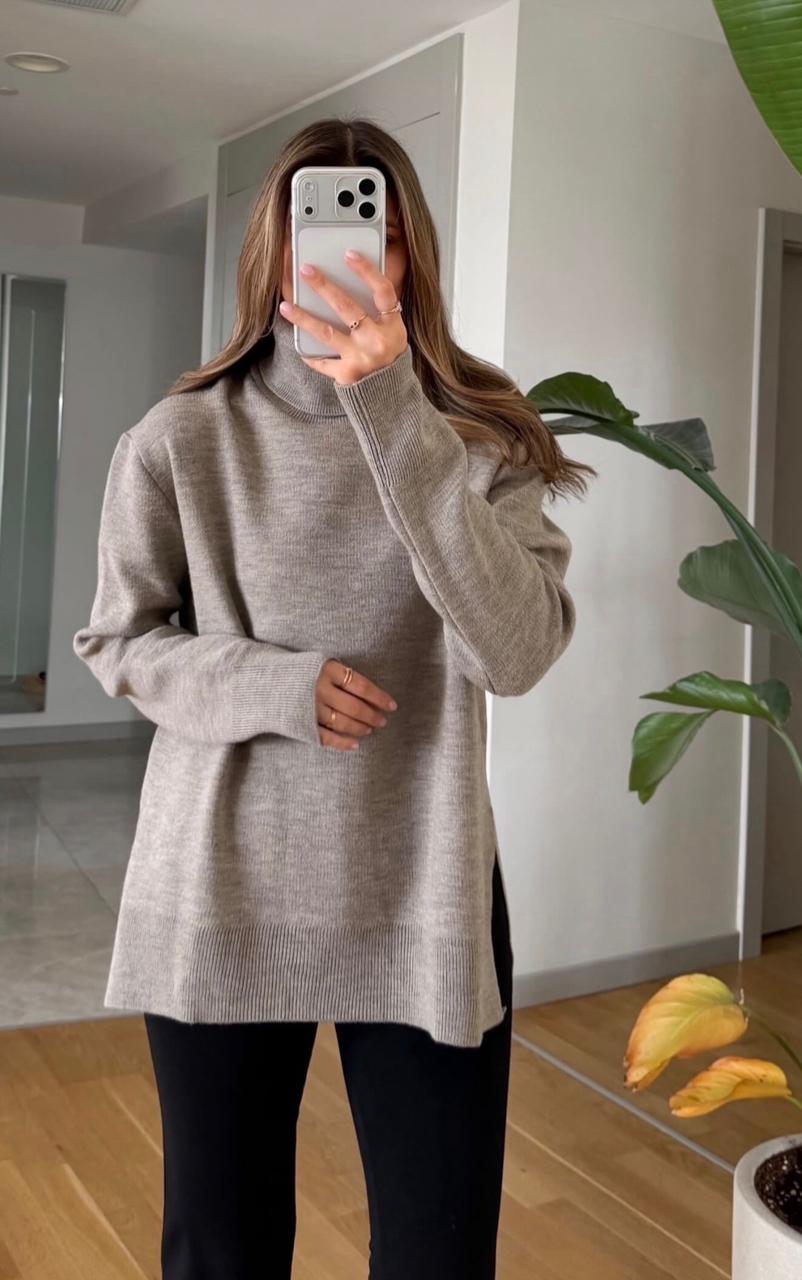 Home Sweaters Greige high neck knit sweater