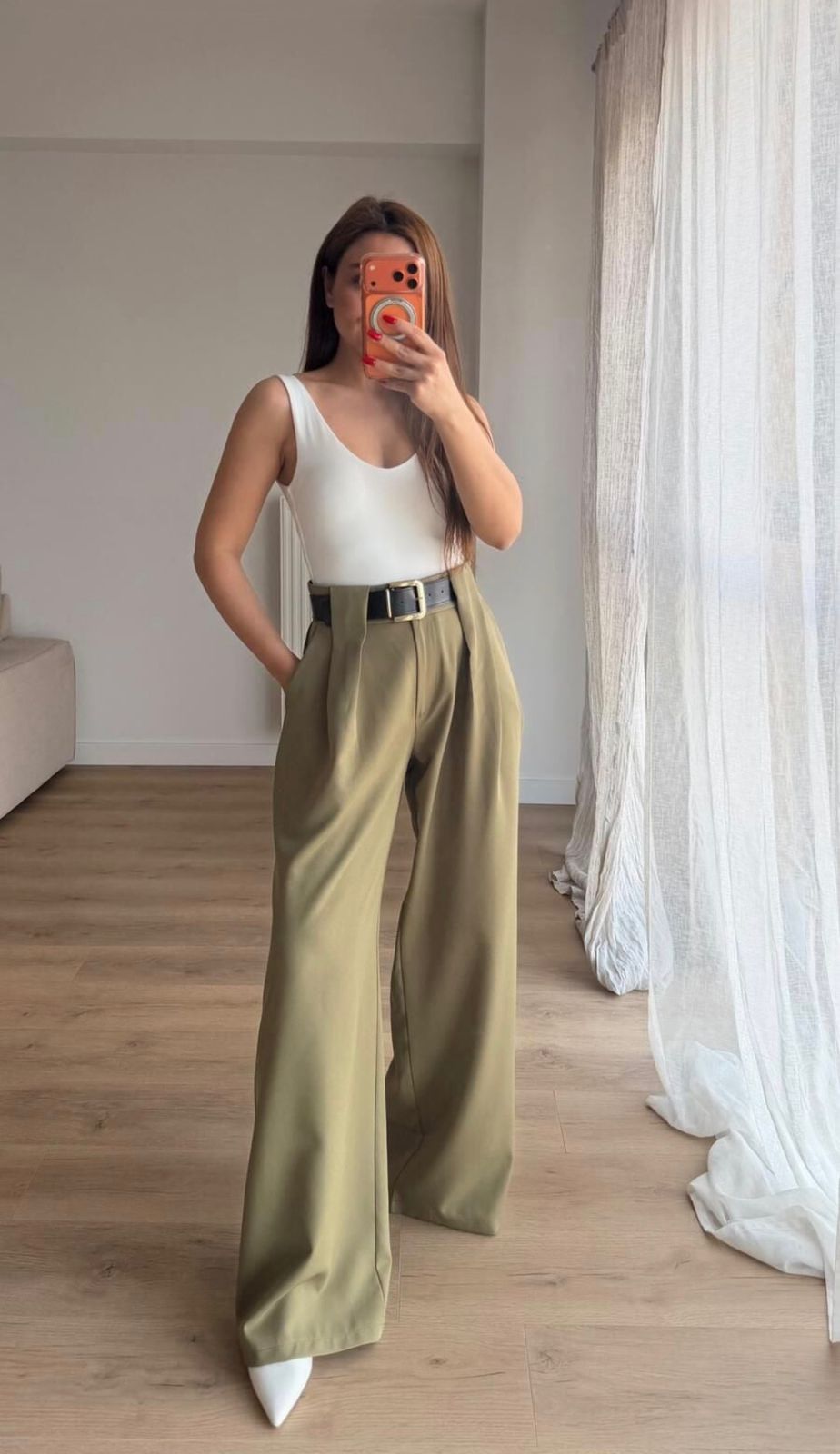High Waist Wide Leg Olive Pants