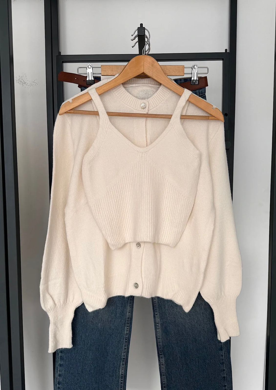 Off white soft wool top and cardigan