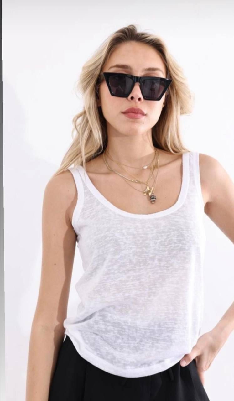 White Scoop Neck Tank Top