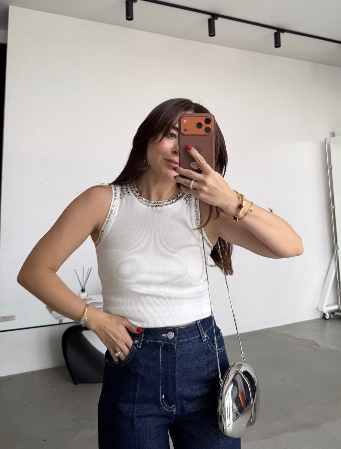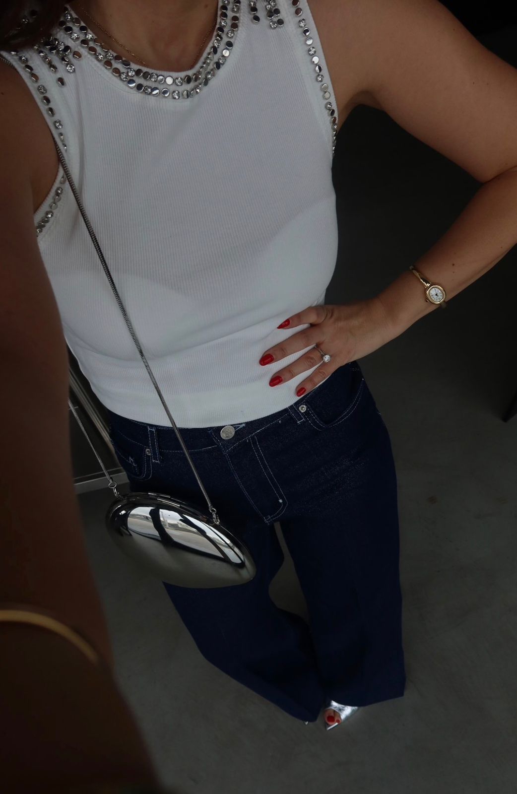 White Sleeveless Top With Rhinestone Trim