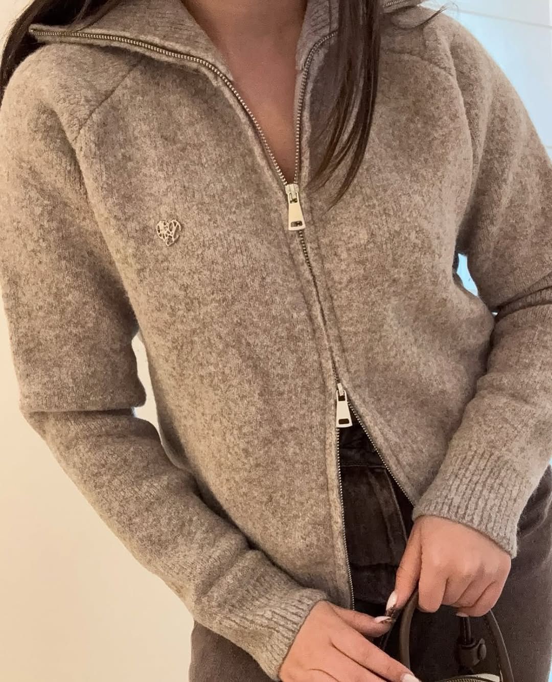 Zip-up wool blend jacket Greige